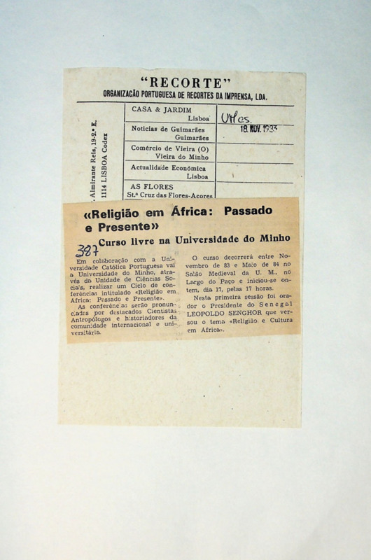 Leopold Senghor, ex-presidente do Senegal, membro da Academia Francesa, doutor «Honoris Causa» de 25 universidades espalhadas pelo mundo, esteve nesta cidade, na Universidade do Minho, onde prendeu o público falando de «Religião e cultura em África». A vinda a esta cidade daquele prestigiado Intelectual foi Iniciativa conjunta da Universidade do Minho e da Universidade Católica, como ponto de arranque para o curso livre que vai decorrer na Universidade do Minho até Maio do próximo ano sobre o tema «Religião em África: passado e presente».