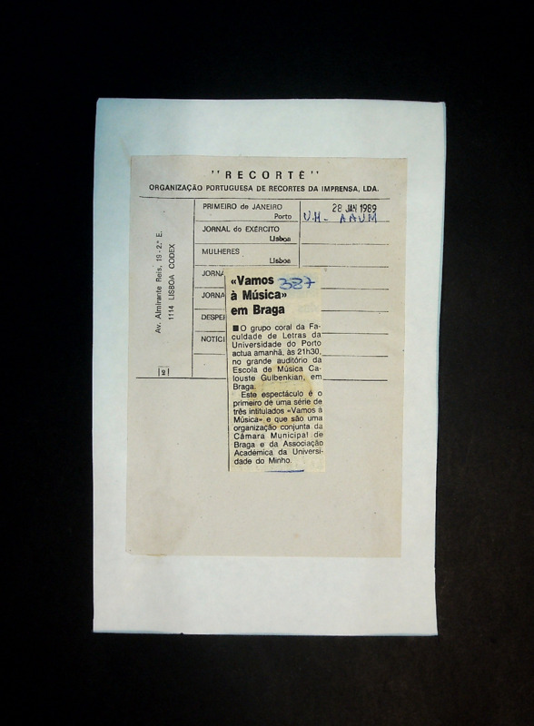 Realiza-se no dia 29 de janeiro, no auditório da Escola de Música Calouste Gulbenkian, em Braga, um espetáculo coral pelo Grupo de Letras da Universidade do Porto, integrado na série "Vamos à Música", organizada pela Câmara Municipal de Braga e pela Associação Académica da Universidade do Minho.