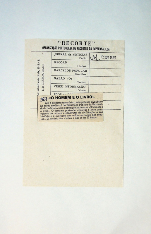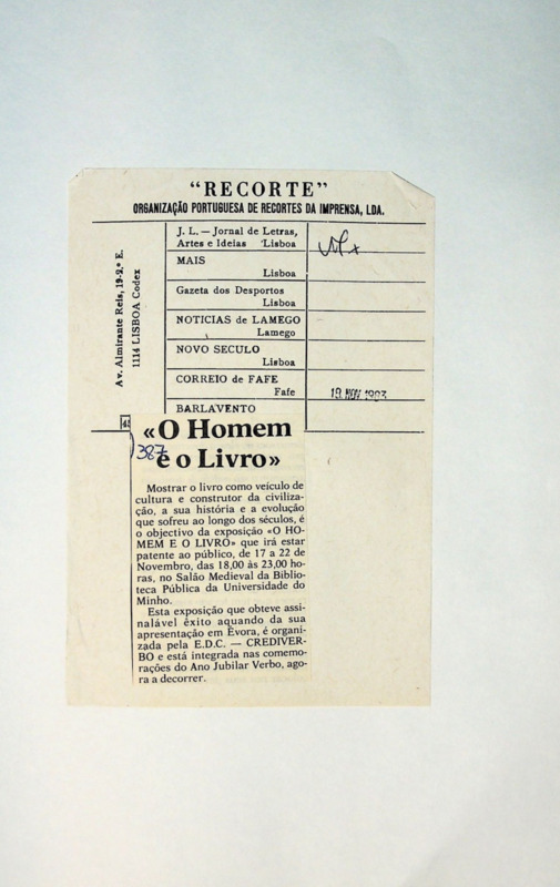 Até à próxima terça-feira, está patente ao público no salão medieval da Biblioteca Pública da Universidade do Minho uma exposição intitulada «O homem e o livro». O certame pretende «mostrar o livro como, veículo de cultura e construtor de civilização, a sua história e a evolução que sofreu ao longo dos séculos».