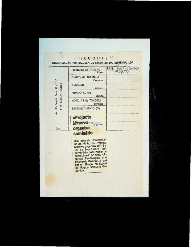 A Associação Académica da Universidade do Minho recebeu a confirmação da cedência de dois computadores pelo Ministério da Juventude, após audiência entre o presidente da AAUM Luís Novais e Couto dos Santos. Os equipamentos destinavam‑se ao arranque do gabinete de saídas profissionais, visando informar estudantes sobre o mercado de trabalho.